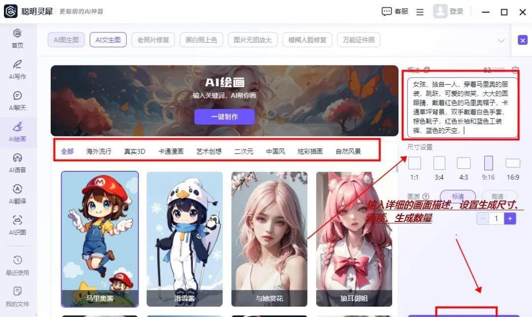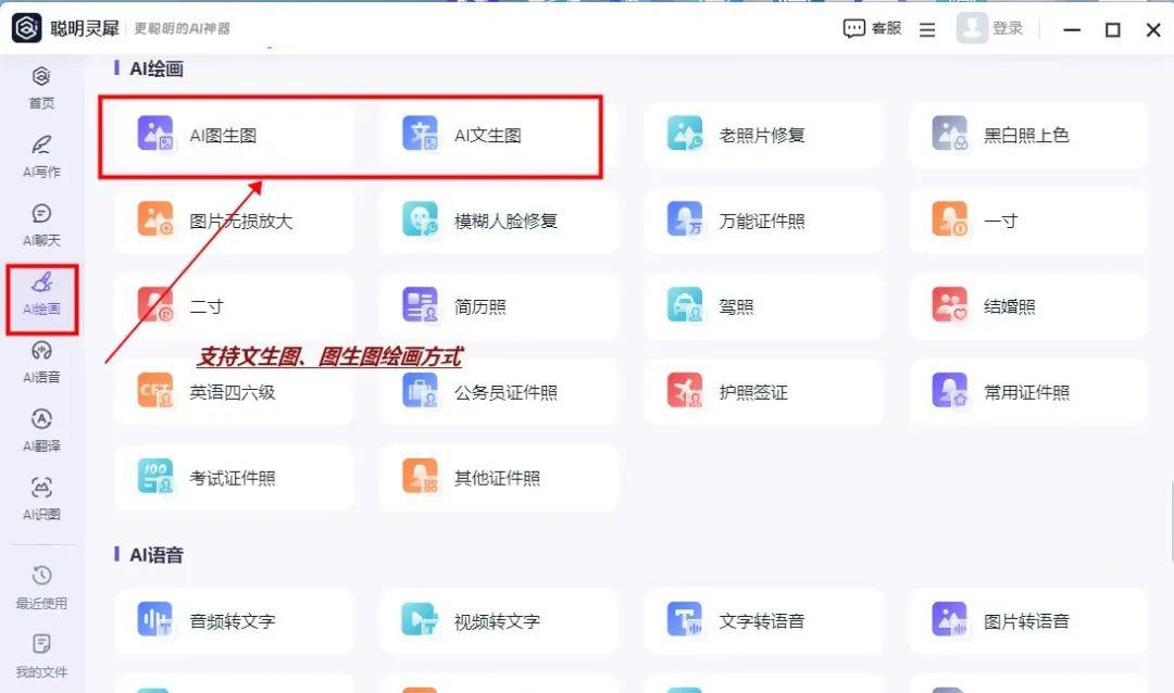 它提供的【AI绘画】功能,支持文生图、图生图两种模式;