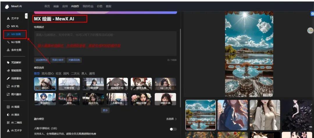 选择‘MX绘画’工具,输入画面描述、选择生成模板,就能自动生成对应的模板啦~