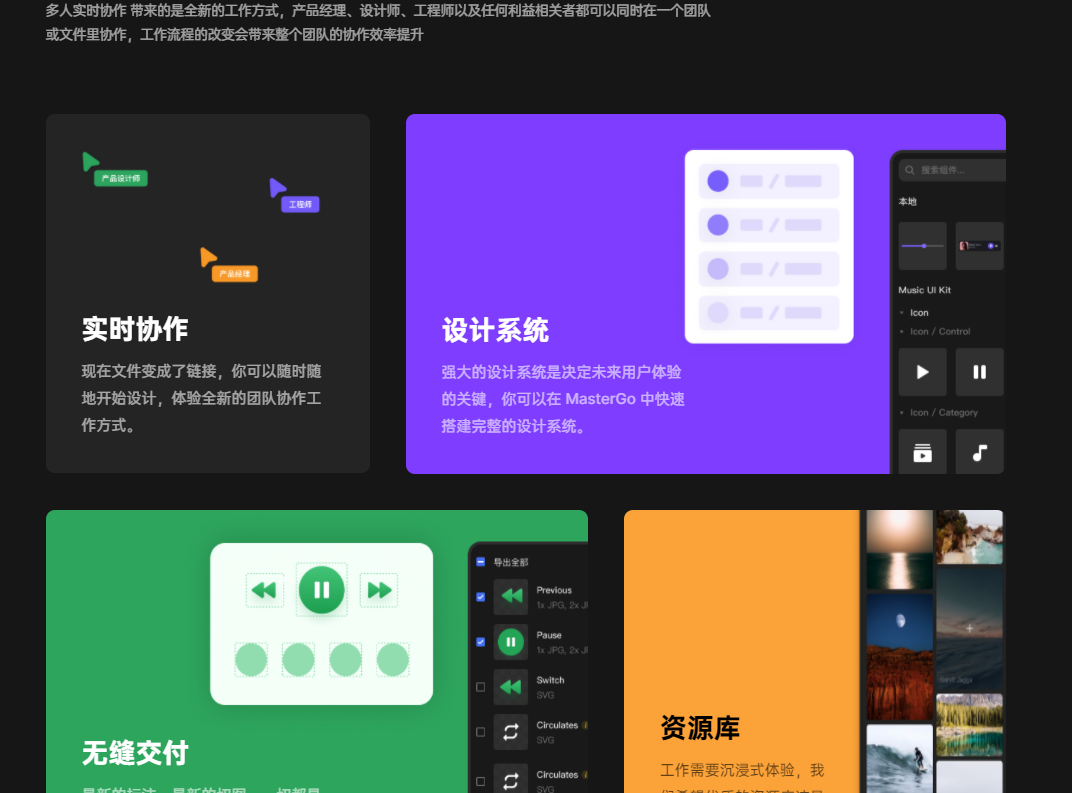 Mastergo是一款协同设计软件,提高了企业内部协同程度与工作效率。不论是产品经理、设计师、工程师还是其他利益相关者,都可以在同一个团队或文件里协作,实时改变工作流程,提升工作质量与效率。
