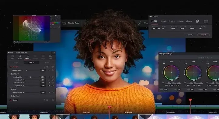 一款集视频剪辑、色彩校正、音频处理、特效合成于一身的软件。其独特的色彩管理、高级音频处理工具以及强大的合成能力使其在专业影视制作领域占有重要地位。