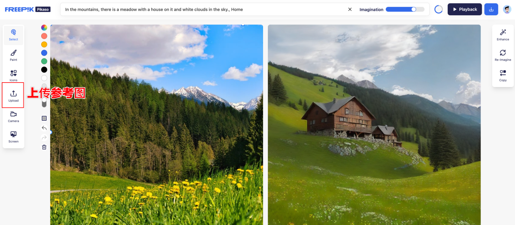 Pikaso可以上传参考图,然后根据提示词生成你想要的效果图,效果真心不错。并且还支持进行图片编辑操作:「自动去除背景」、「平铺画布」、「复制」、「图层调整」等操作。