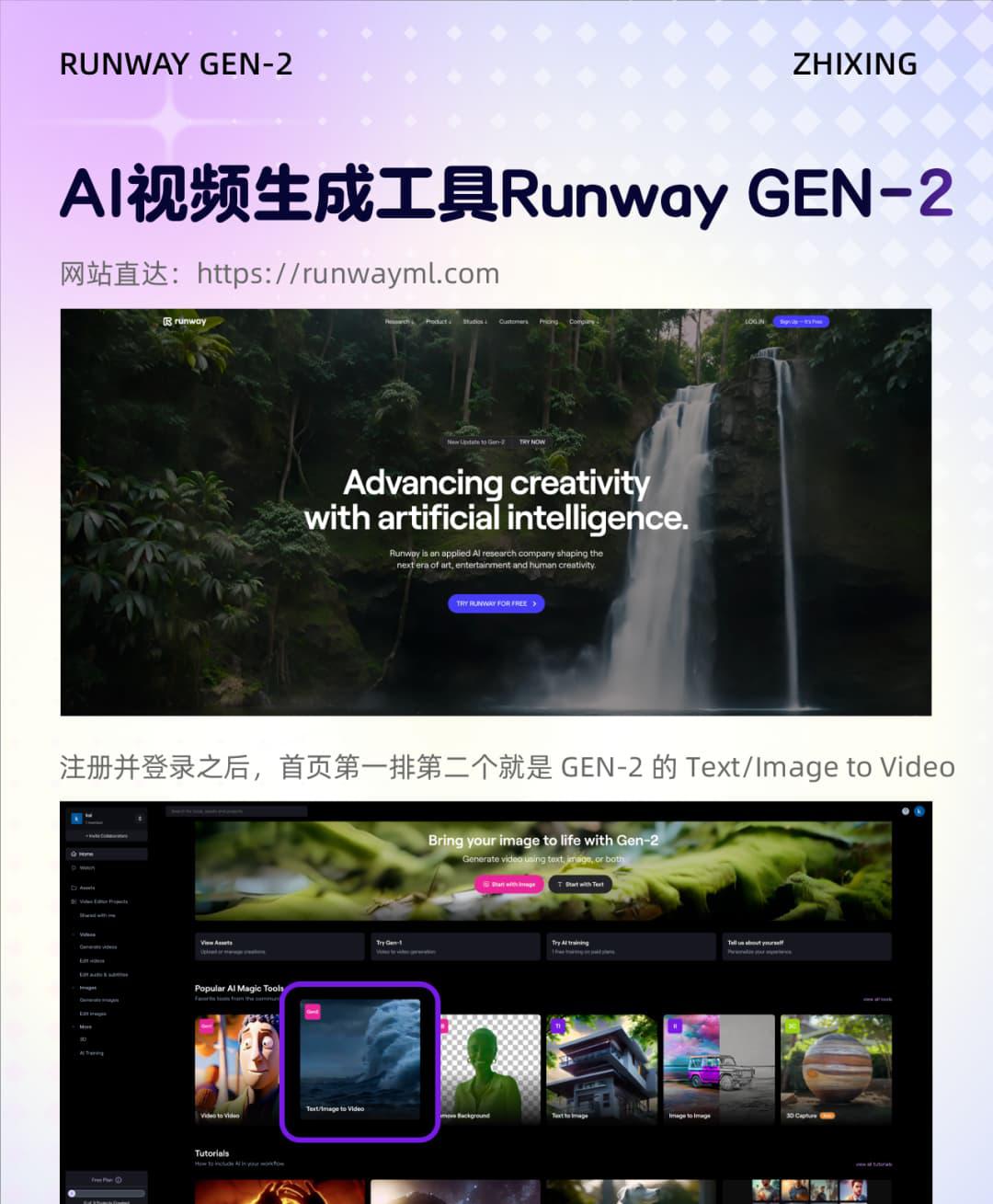 熟悉Runway的小伙伴对Runway公司推出的GEN-2的AI工具应该不陌生,它可以实现从文本/图片到视频的生成。你只需输入文字或提供图片,它就能自动合成一个符合你想象的视频。