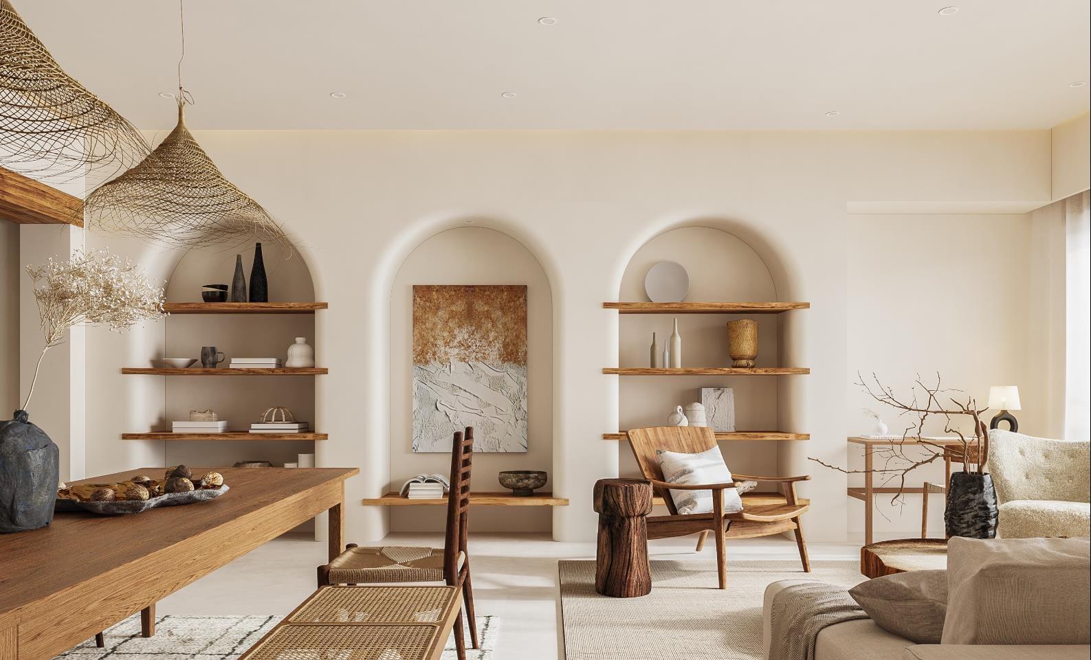 侘寂风格起源于15世纪的日本哲学。侘寂风格大多数以中性色为主,不存在亮色系或者抢眼的跳色,一切都表现得异常禅意、沉寂、幽静。