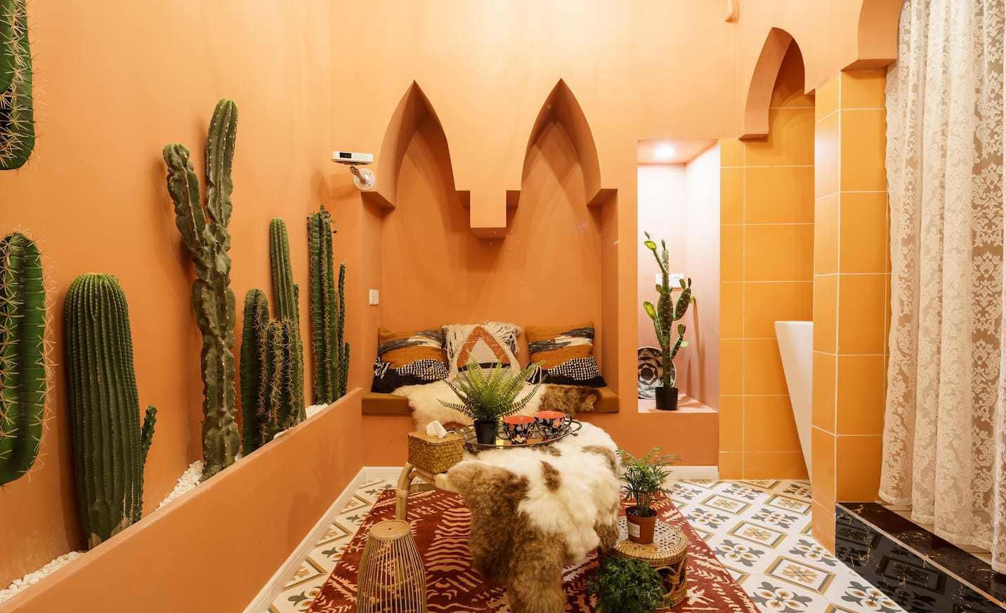 在装修设计之中摩洛哥风格特点更体现在结构上面,它以对称、垂直、尖拱、主体取集中式平面,墙面又结合摩洛哥独特的民族魅力,更显得整个居室风格的独具特色。