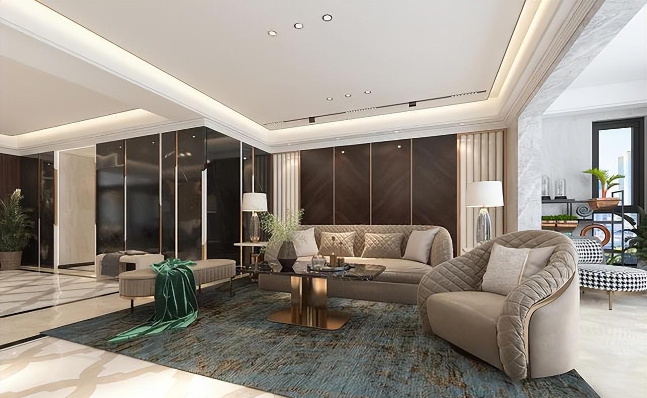 港式轻奢风格多以金属色和线条感营建富丽堂皇的奢华感,简练而不失时髦。而港式轻奢风格的空间以金属、皮革的中性色调为主,用色彩的纯度传递细腻的质感,两者结合就成了港式轻奢风。