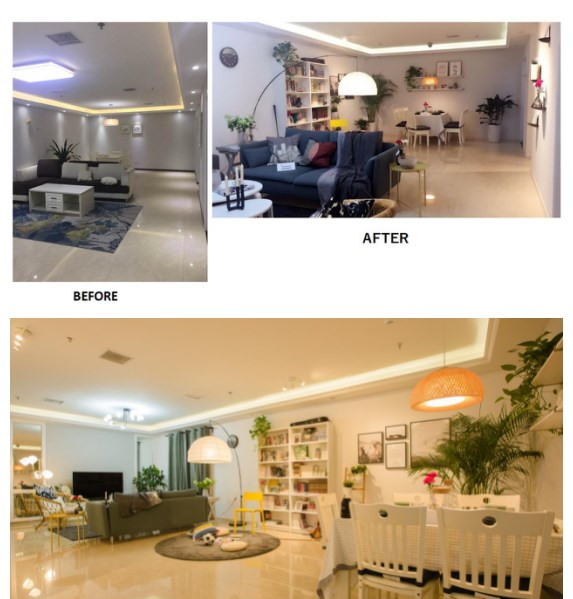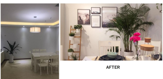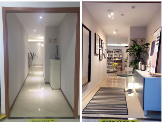 软装前的玄关空空荡荡,装饰后充满绿色,自然过渡,显得更温馨。