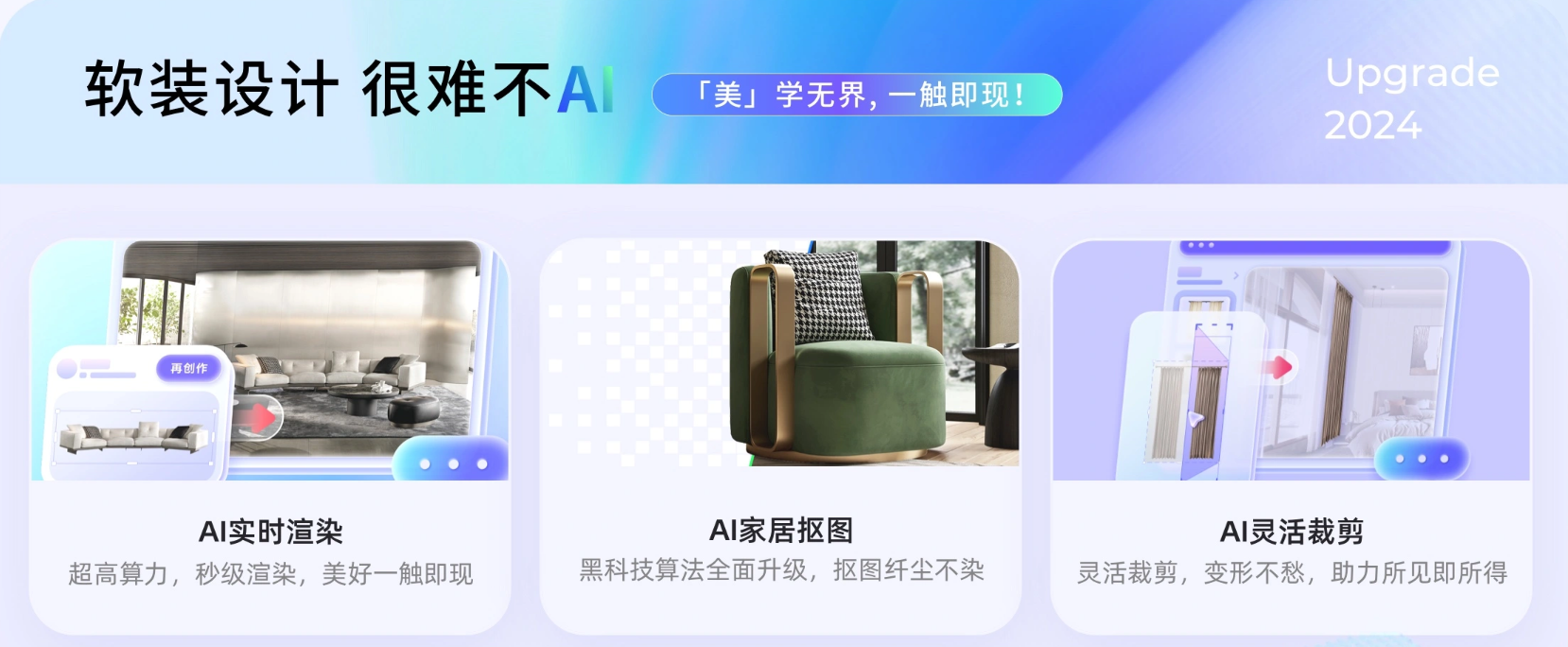 超高算力的新体验变革,一触即现。秒级渲染体验,突破2D界限,助力软装设计。