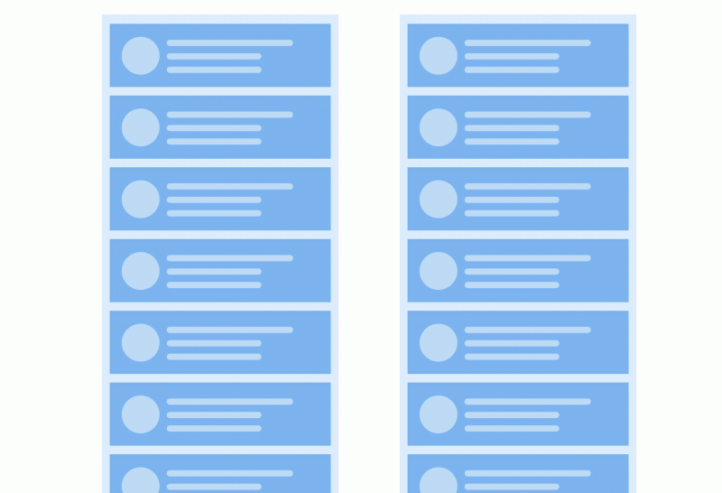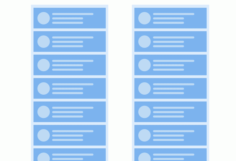 第一个示例具有与项目列表的交互作用,为滚动过程增添了一点乐趣。正确的概念会在卡片之间产生更多空间的视觉错觉,支持界面中更多空气的感觉。