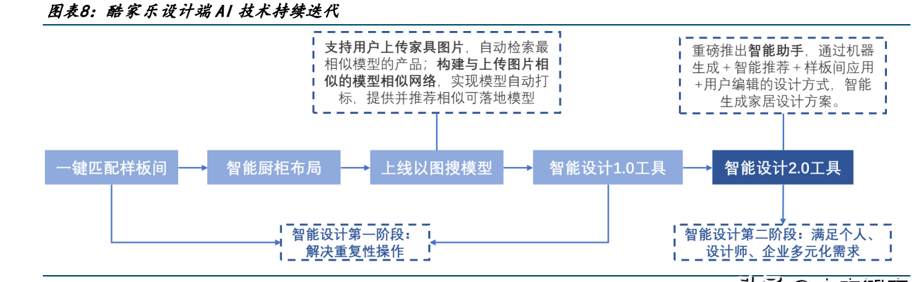 在“整家定制”时代,行业竞争逐步加剧,消费者对于传统家居门店的设计需求显著提升。由于优秀设计师资源较为稀缺,成熟智能化程度较高的家居设计软件在提升流量成交率和消费者满意度方面发挥越来越重要的作用。AI在家居设计软件中的应用主要体现在三个方面:提升出图效率、赋予设计灵感和智能纠错。展望未来,随着AI在家居设计软件中的深化应用,除了提升设计效率和准确度之外,还将在赋予设计灵感和增强需求互动方面展现更大的潜力。
