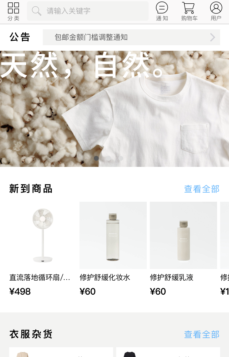 让我们来看看我最喜欢的APP界面设计—无印良品。简洁明了,让人心动。在五花八门的APP中,这种纯粹的设计总能吸引我的眼球。