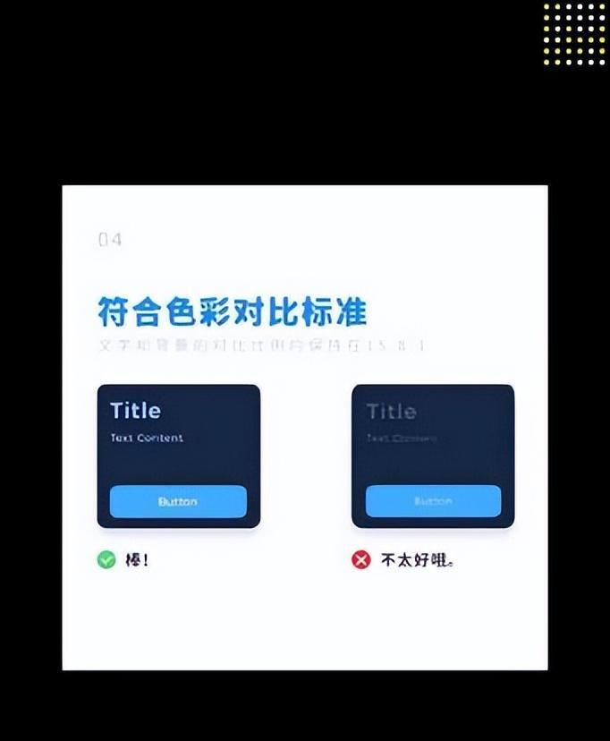 • 符合色彩对比标准,文字和背景要保持15.8:1的比例。
