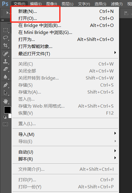 了解了这些,就可以在“文件”中打开图片或新建文件。