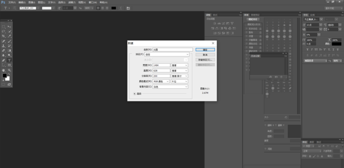 新建文件时,可以设置图片的大小、分辨率、背景色等参数。