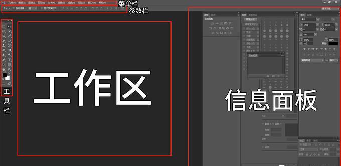 PS的界面组成大致分为菜单栏、参数栏、工具栏、信息面板以及工作区。