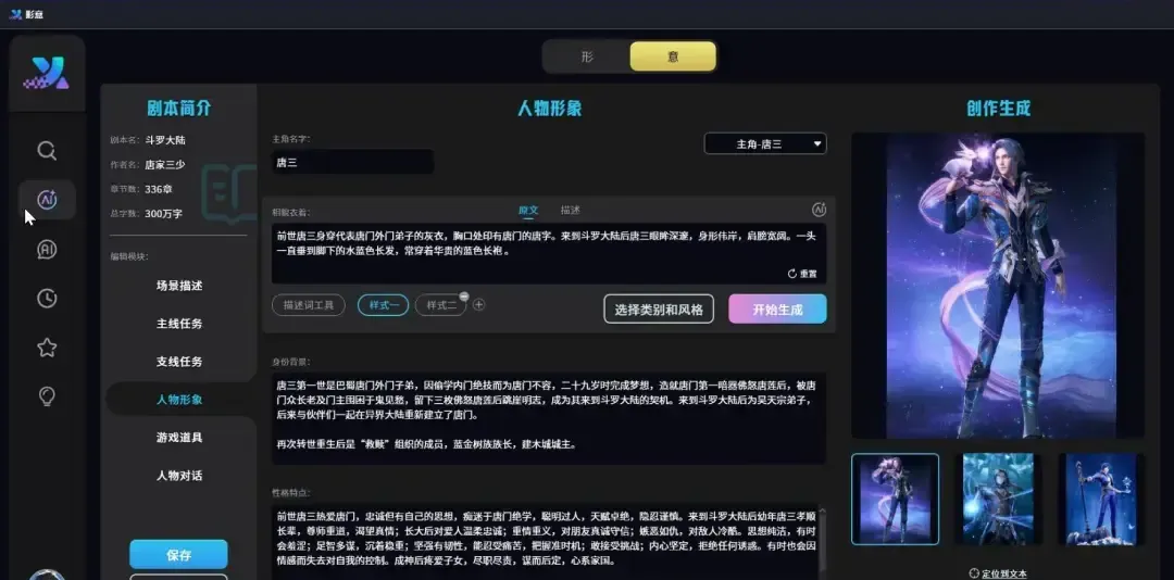 AI赋能IP游戏化改编,提高策划、美术等团队研发效率。《形意》通过自动化拆解文学剧本,简化前期策划流程。