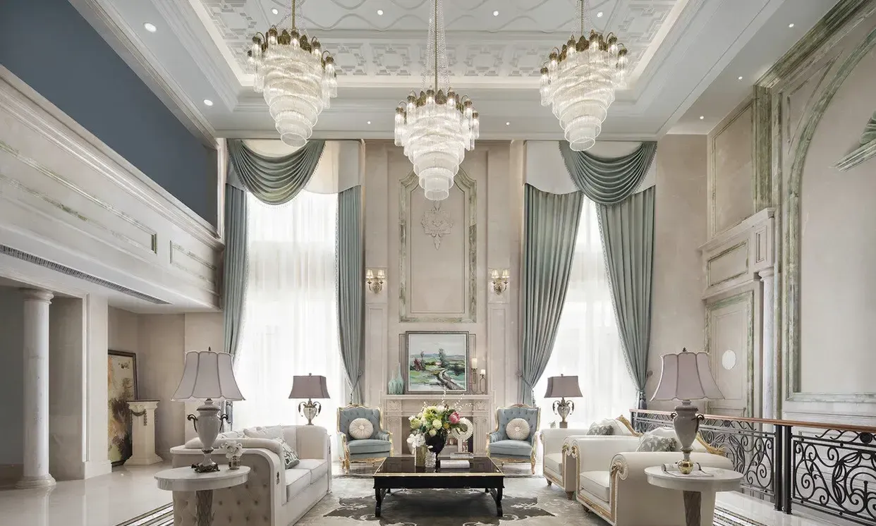 在空间上追求连续性,追求形体的变化和层次感,室内外色彩鲜艳,光影变化丰富,室内多用带有图案的壁纸、地毯、窗帘、床罩及古典式装饰画或物件,为体现华丽的风格,家具、门、窗多漆成白色,家具、画框线条的部位多饰以金线金边,典雅中透着高贵,深沉里显露豪华,具有很强烈的文化感受和历史内涵。