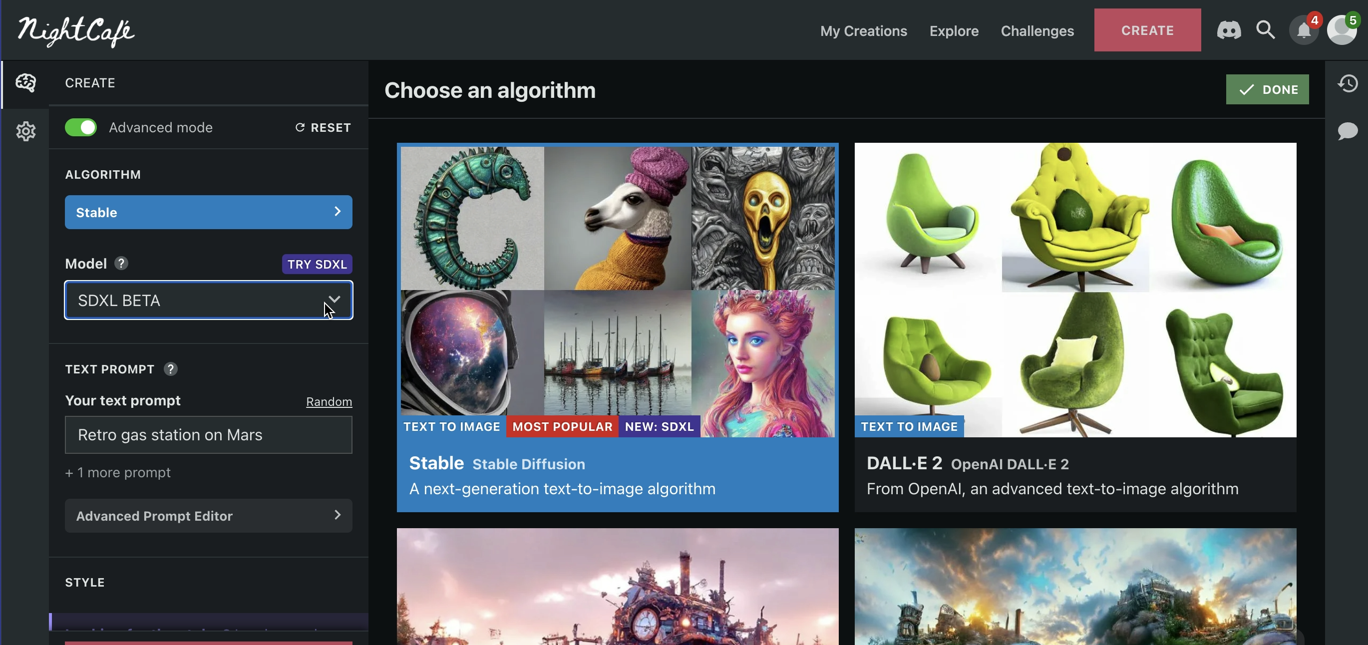 NightCafe Studio有多种模型可供选择,总体效果不错。