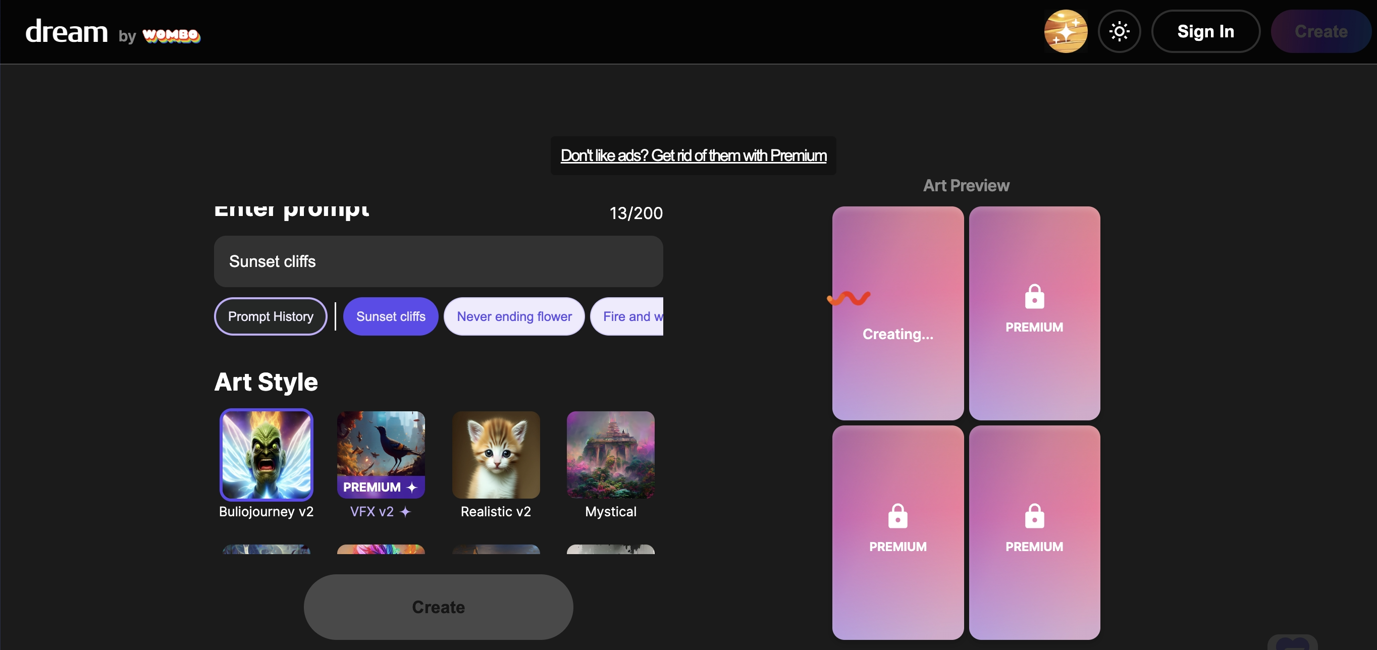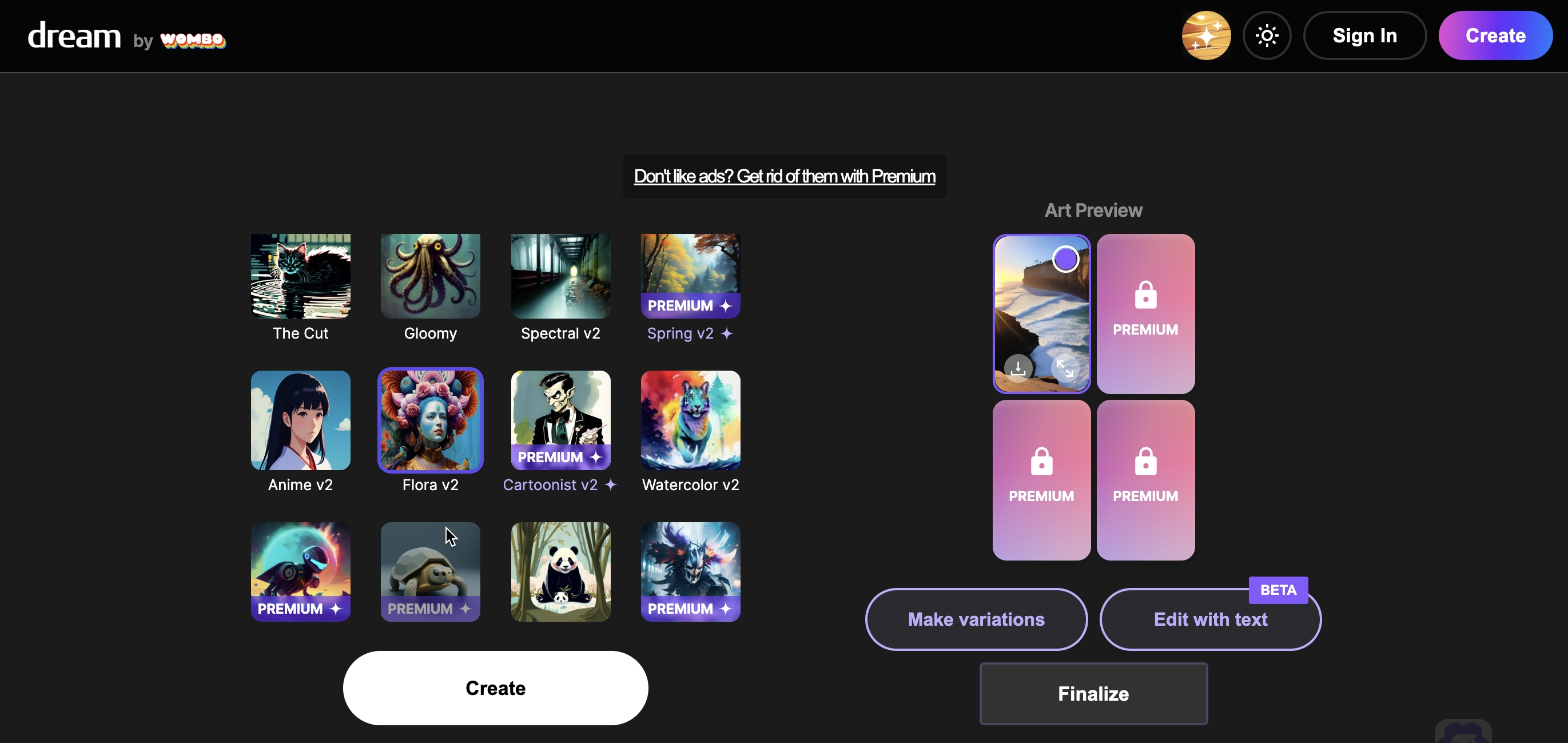Wombo Dream能在几秒钟内将想法变成AI驱动的绘画软件,永久免费使用,效果惊艳。