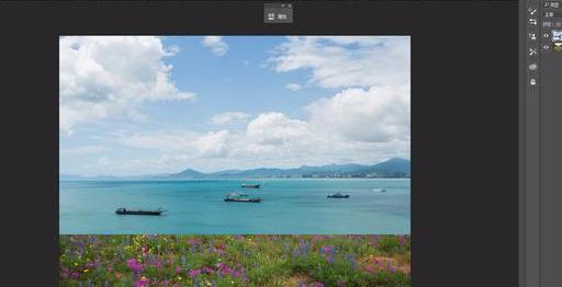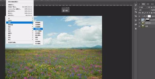 添加虚化效果并突出近距离花草,调整画布大小并合并图层。