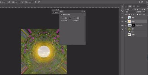 翻转图层并修补,调整为正方形画布,将图像铺满,并转换为极坐标效果。