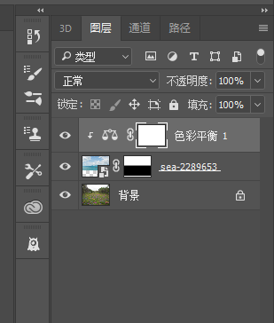 通过渐变工具让两个图层融合,调整天空色彩平衡。