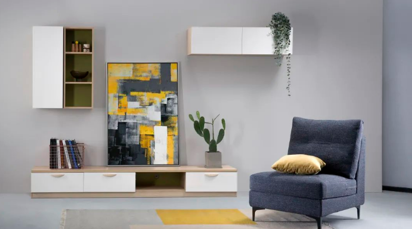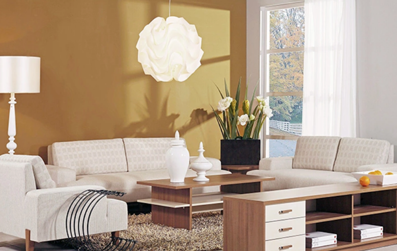 选择现代风格的软装配饰,如大地色系的布艺沙发、简约时钟等,能营造出现代感。