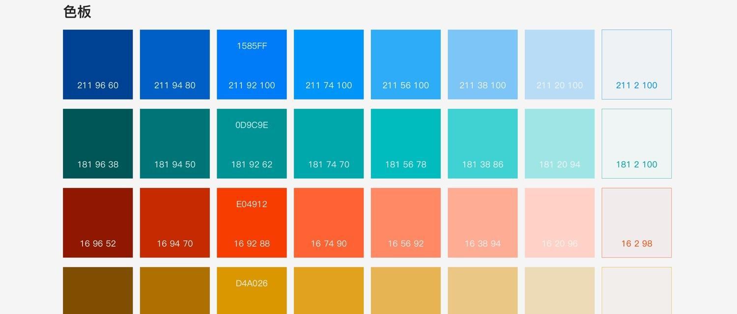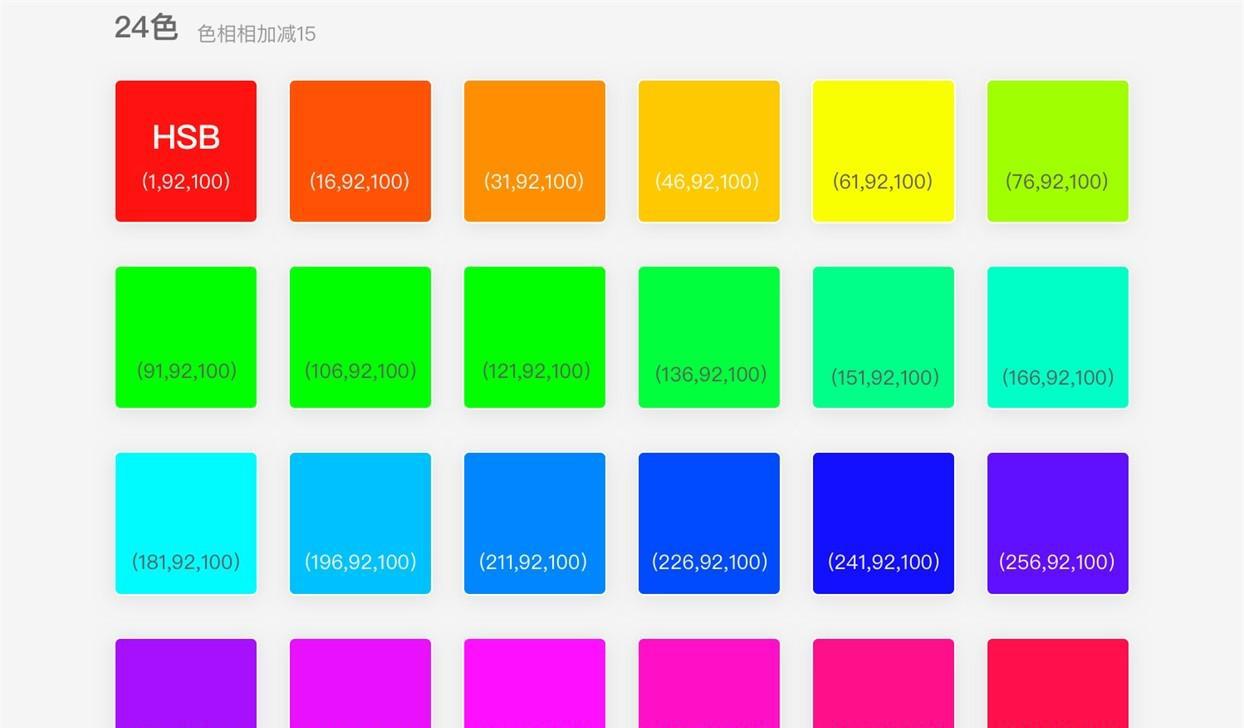 以品牌色的色相为基础,提取24个颜色,方便颜色搭配。