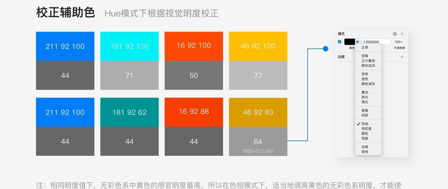 进行感官明度校准,保证辅助色和品牌色明度一致。