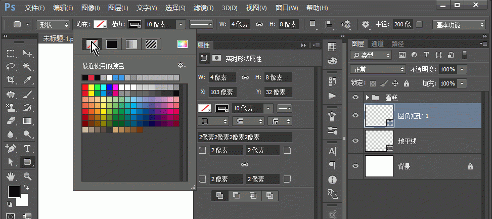 关闭填充色,打开描边选项。右键点击大小输入框,选择像素,设置为10像素。