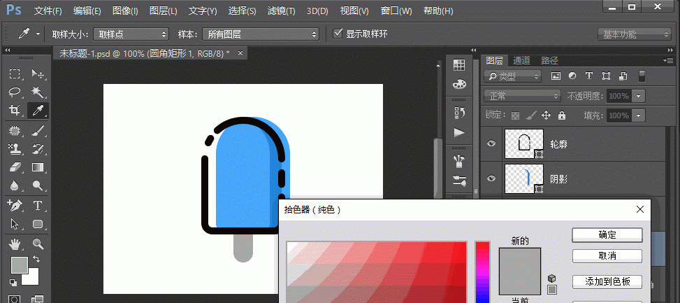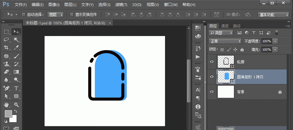将填充色改为蓝色,并将图层位置调整至轮廓下方,填充蓝色。
