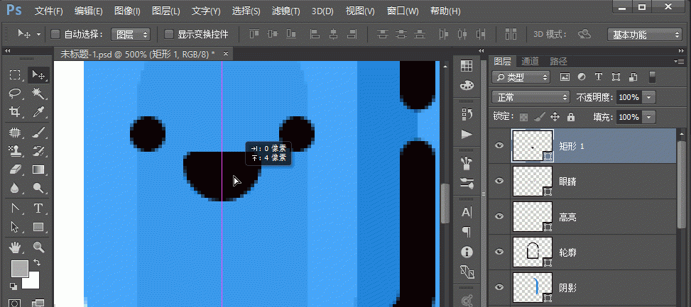 使用圆角矩形工具绘制一个红色的小长条作为舌头,放置在适当位置。