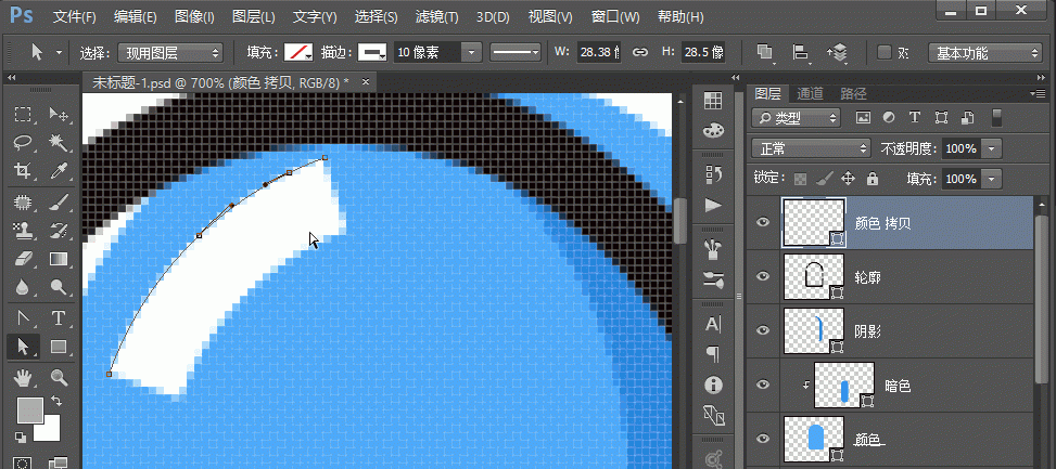 制作一个高亮的区域,仍然使用添加锚点的方式。如果发现某些部分不是圆角的,可以尝试调整钢笔工具的最后一个转换点工具来修改锚点角度。