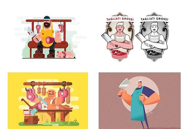 屠夫们的共同特点是彪悍大叔+大刀+围裙。这些元素构成了形象,让我们脑海中浮现出一个卖力剁肉的大叔。