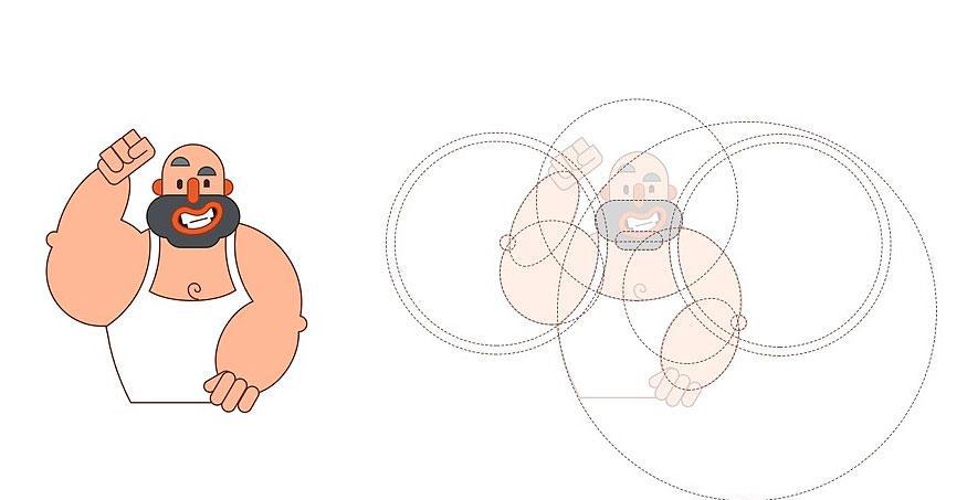 身体部分由多个圆形、椭圆形叠加而成,细节关乎氛围表达。颜色和阴影的叠加使插画更加生动。