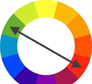在色轮上直线相对的两种颜色称为互补色。互补色因为互相处于对方的对立面,所以搭配起来会形成强烈的对比效果,进而吸引用户的注意力。