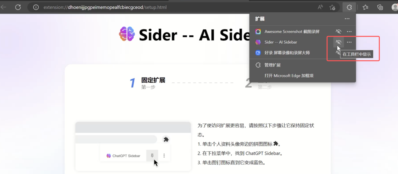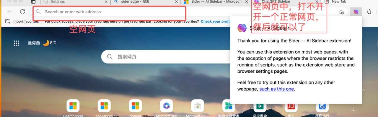 注意:AI侧边栏只能在正常网页中打开,在空页面中无法使用,比如新标签页