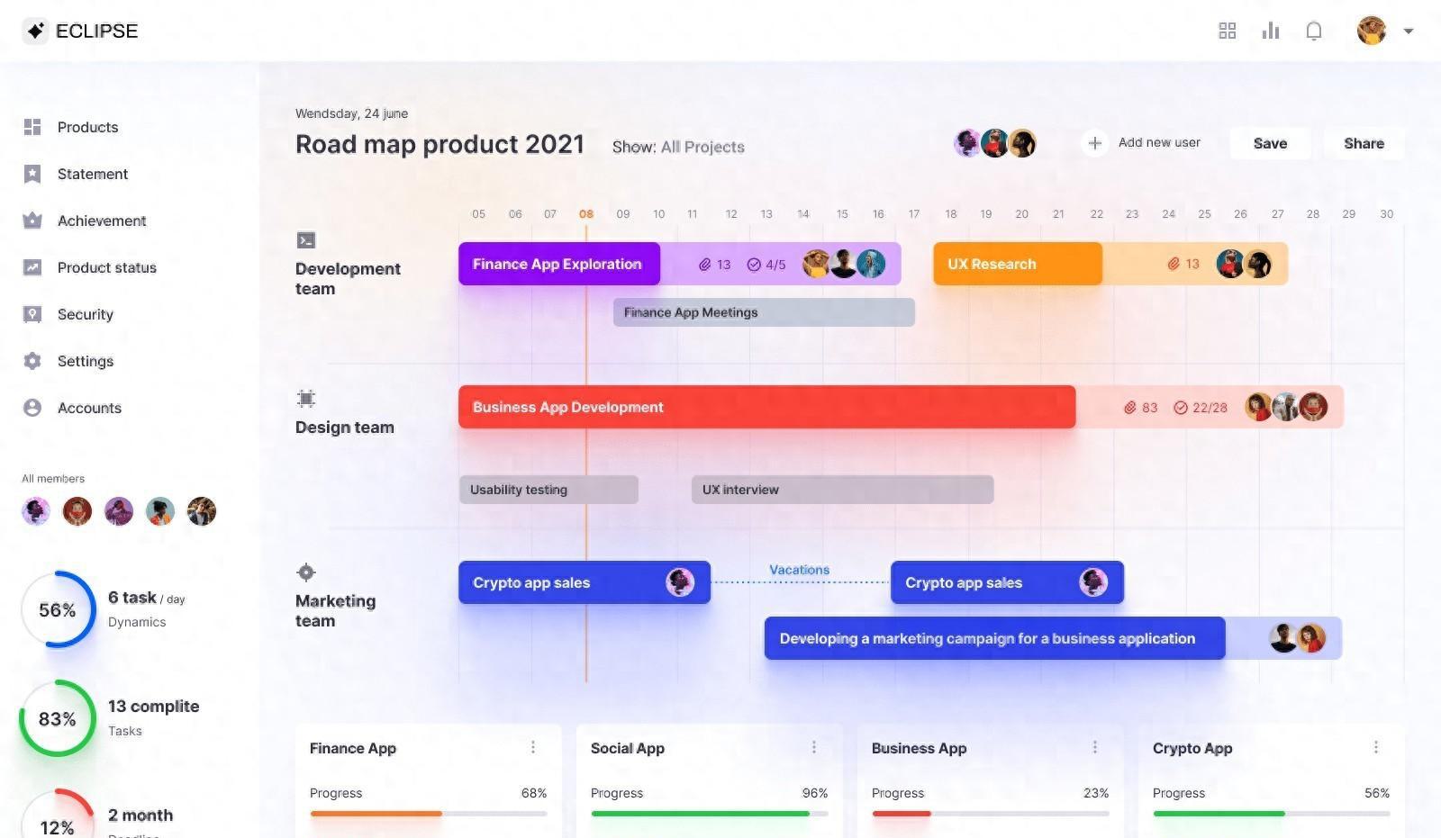 甘特图设计是项目管理中常用的工具之一。它不仅能清晰展现项目任务和进度,还能让团队成员清晰了解各自的工作内容和时间安排,实现功能和美观的巧妙平衡,是项目管理中不可或缺的利器。