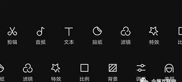 剪映编辑界面下方有十大功能:剪辑、音频、文本、贴纸、滤镜、特效、比例、背景、调节、美颜。