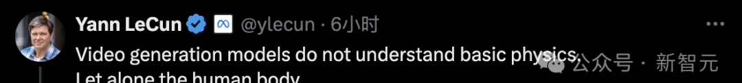 这种时刻,当然少不了LeCun的嘲讽,他激动地再次重述,「视频生成模型根本不理解基本的物理,更不用说人体了」。