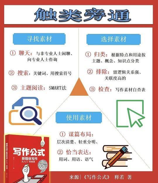 《写作公式》指出,写作关键在于选择合适素材。挖掘灵感、及时把握素材是写作过程中的必经之路。