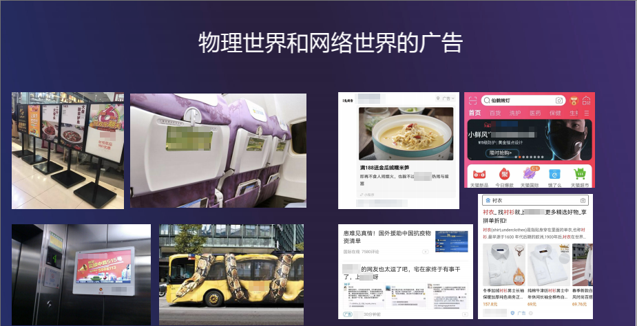 物理世界和网络世界的广告对比:物理世界的广告更融入周围环境,而网络世界的广告形式更多元。