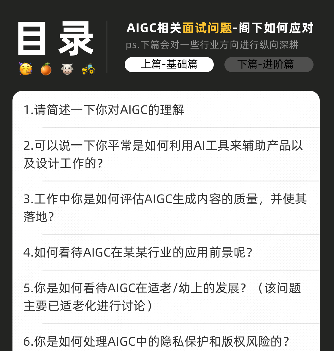 1)近半年AIGC技术迅速崛起,许多公司在面试中不仅考察设计师的设计与产品思维能力,还会询问关于AIGC技术掌握与理解情况的问题。