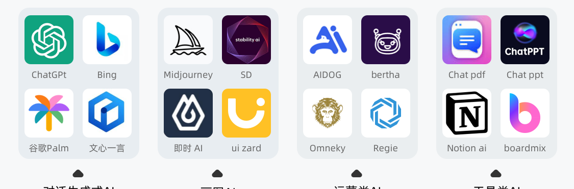 常用的软件有ChatGPT用于生成内容,Midjourney用于文转图像,还有GalileoAI用于UI设计等。