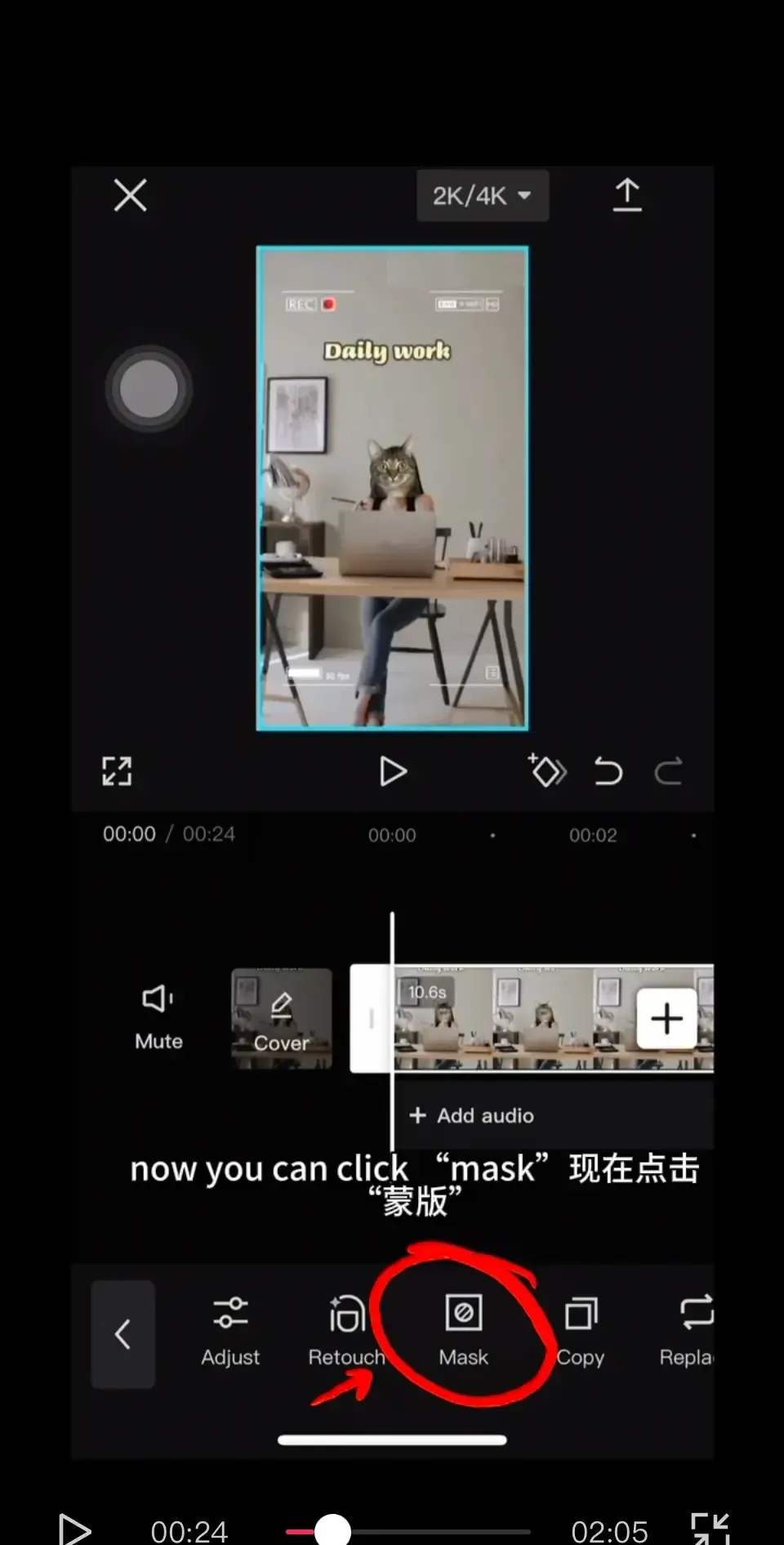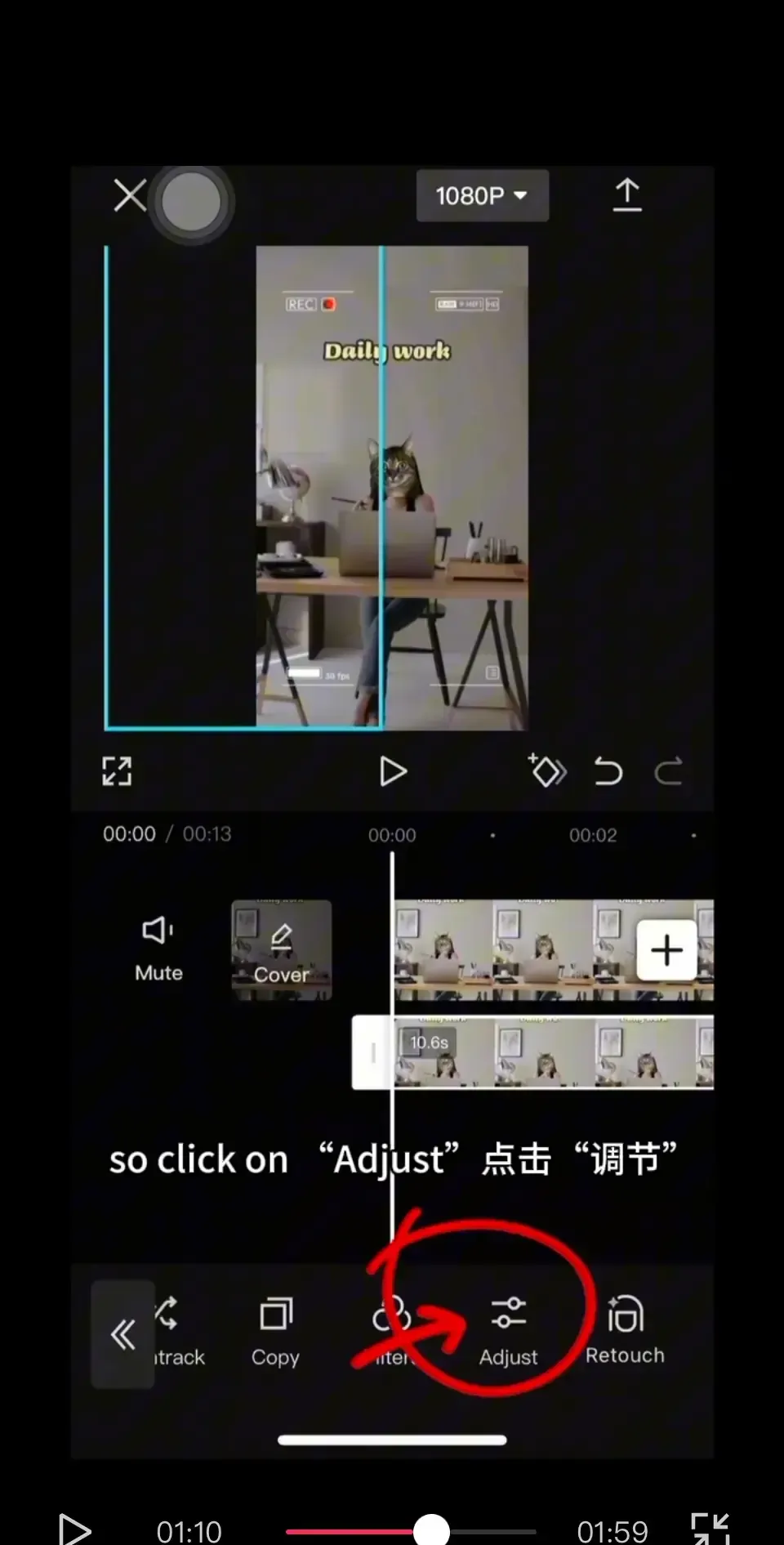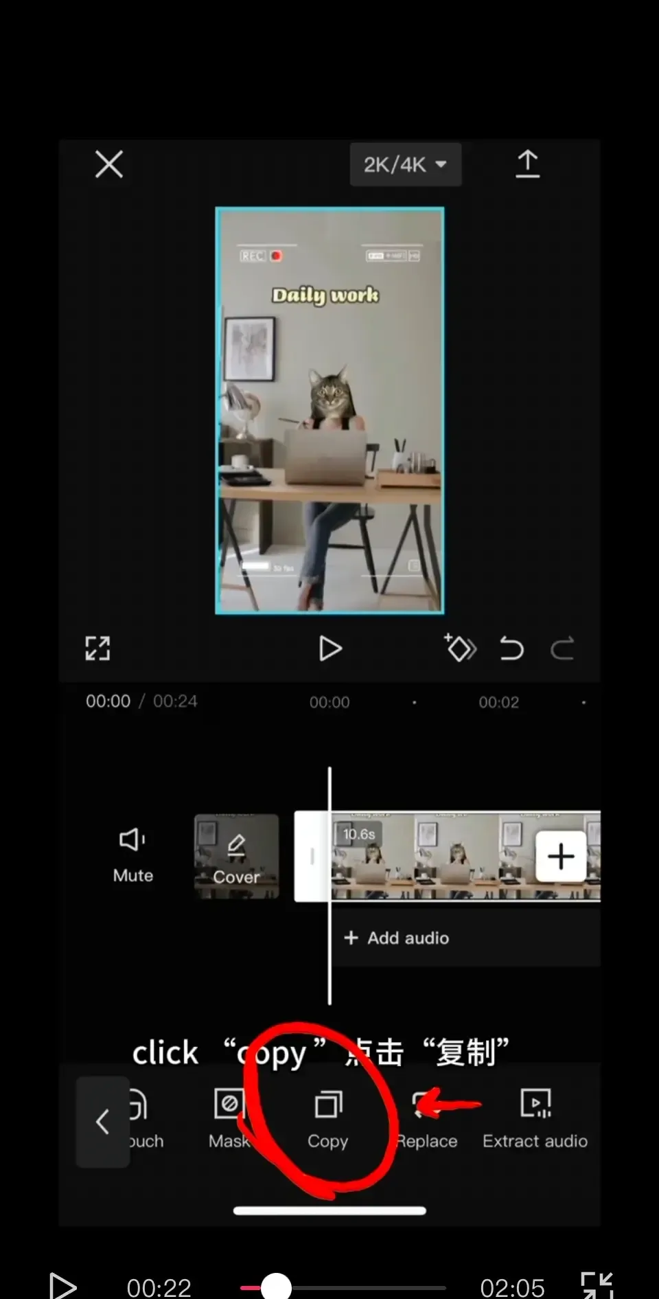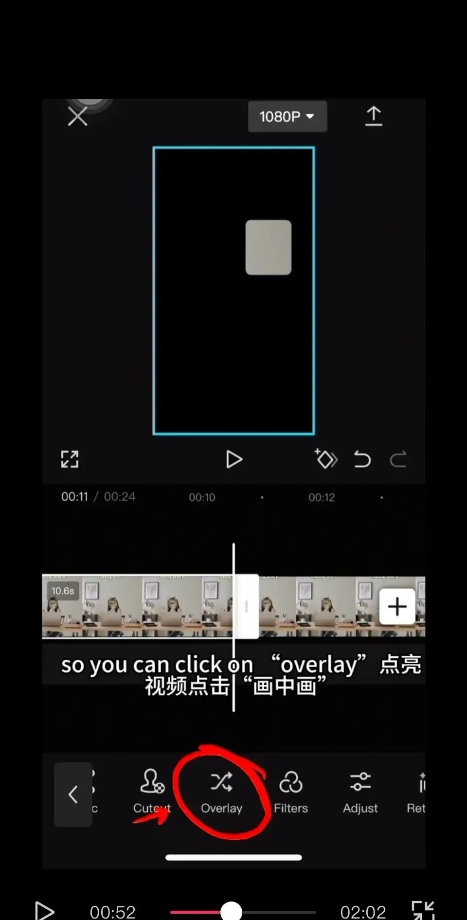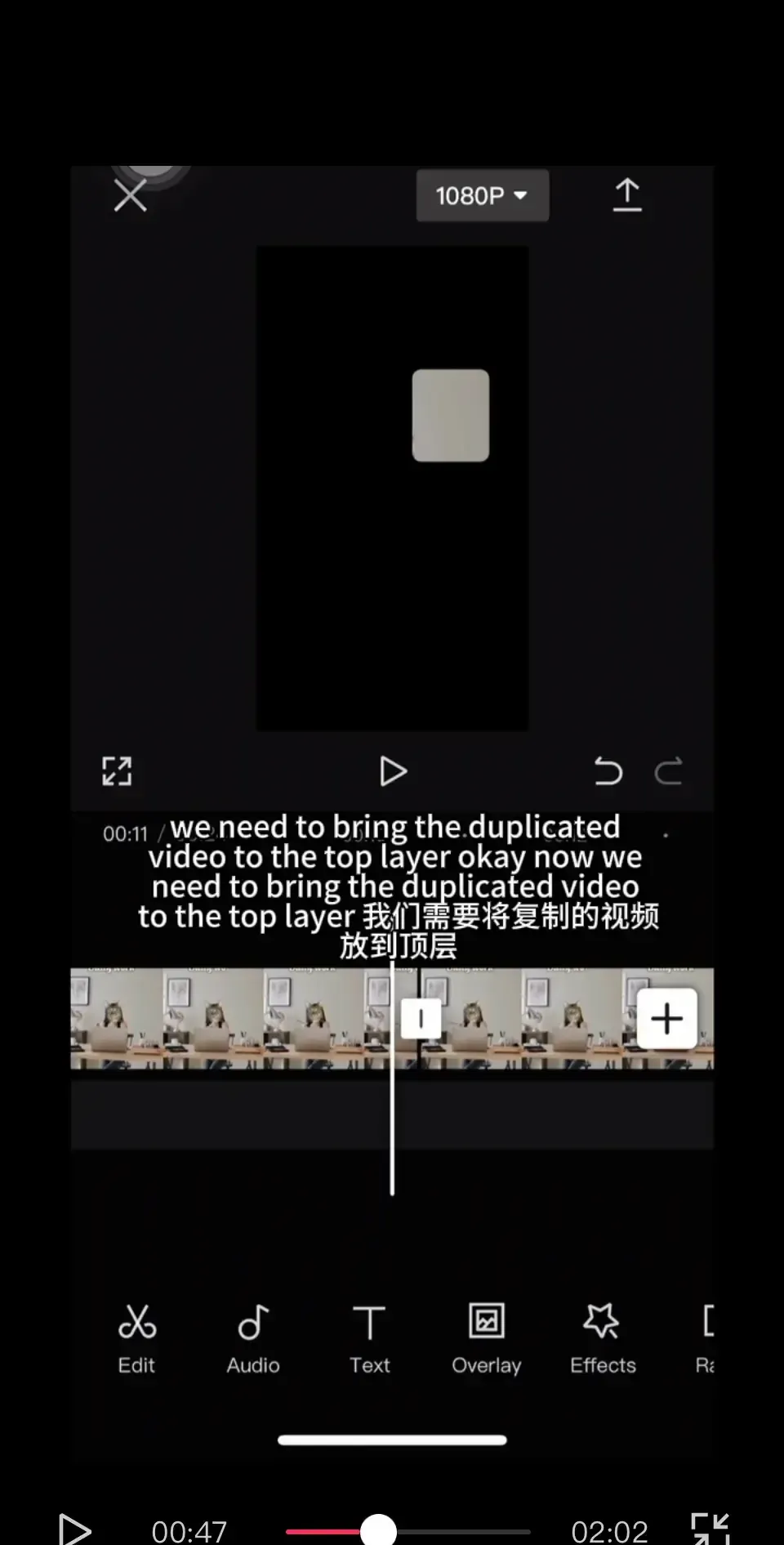 点击“勾号”确认,然后将复制的视频移到顶层。