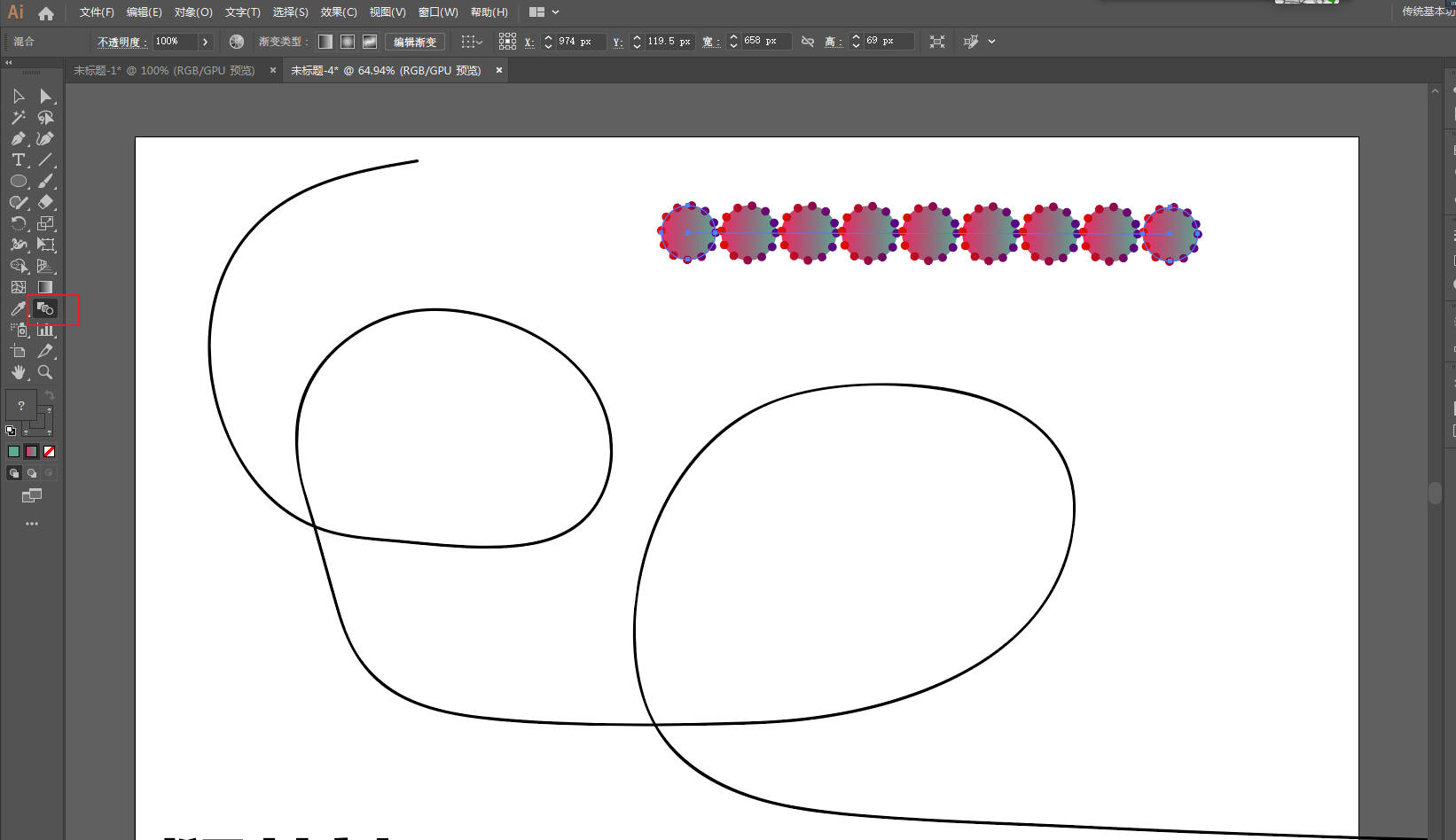 5、选中两个对象,选择【对象】→【混合】→【替换混合轴】。