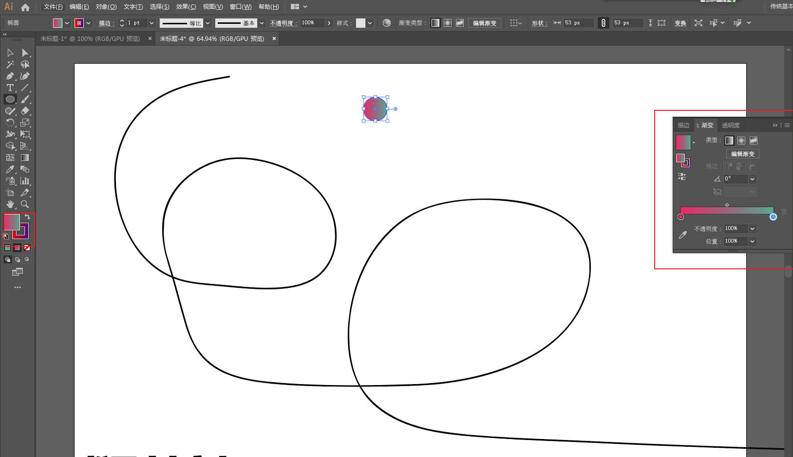 3、选择【椭圆工具】,绘制一个椭圆,给椭圆添加【渐变】,添加渐变色。
