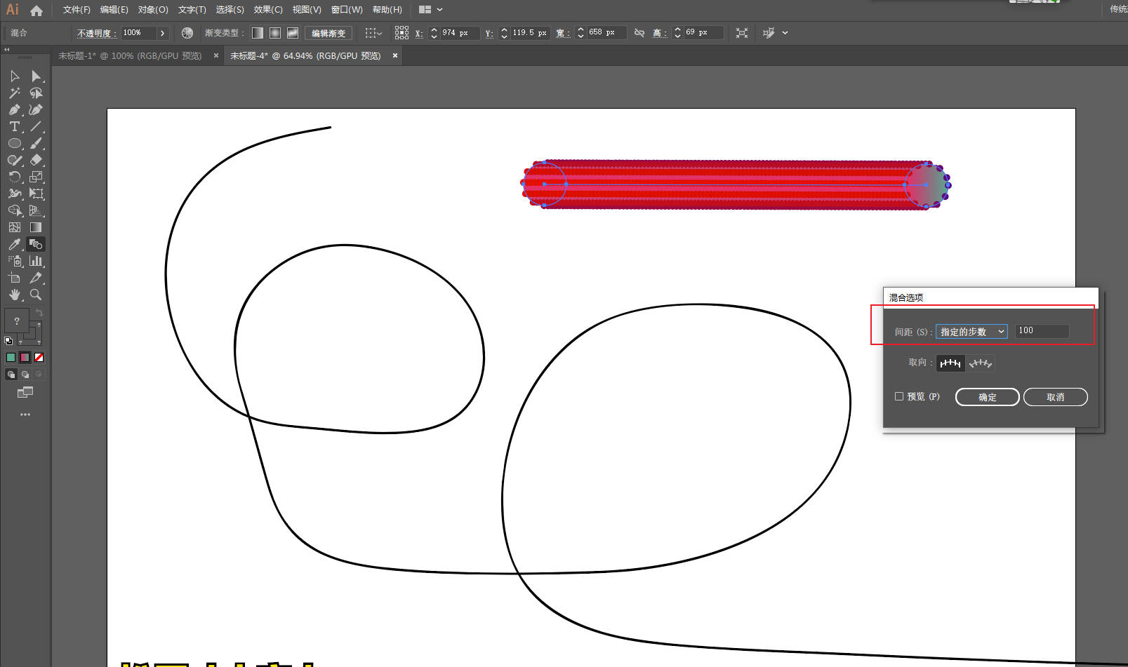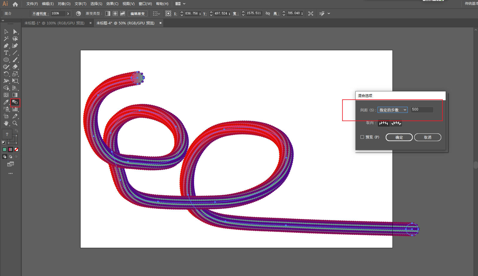 6、选择【混合工具】,按回车键,调整【指定步数】,立体感出现了。