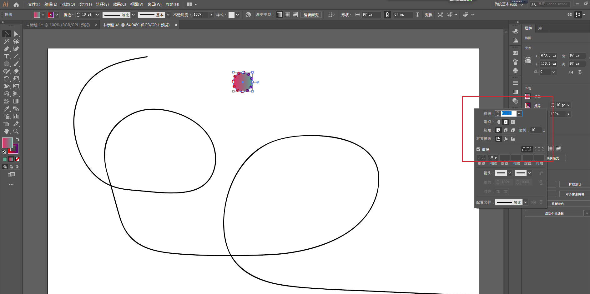 4、调整圆形,边框变成虚线,并复制出一个圆形。