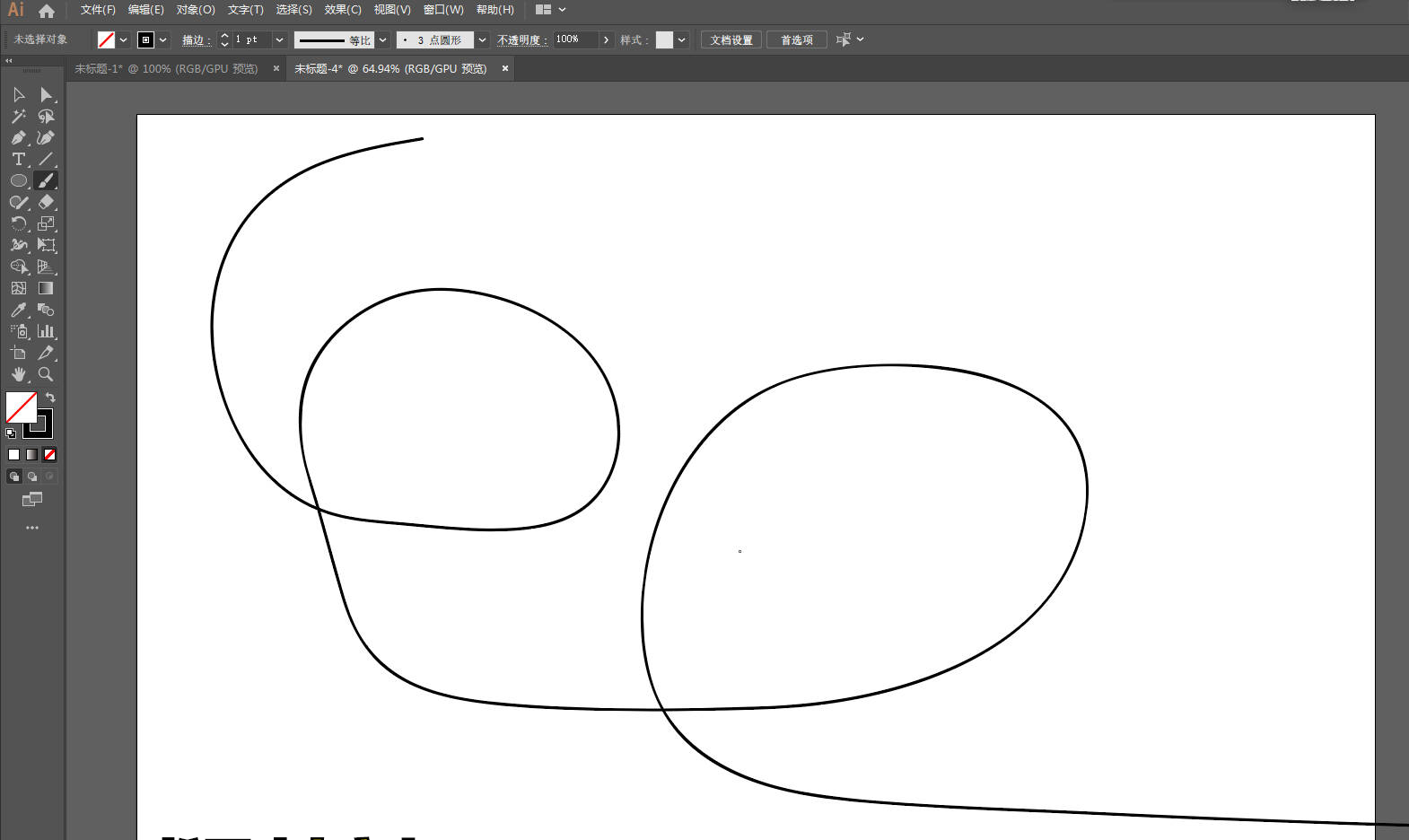 1、打开AI,先用【画笔工具】,在画布上随意画出想要的形状。