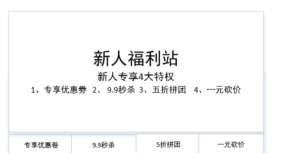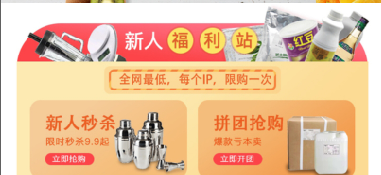 新人专享区旨在激活新用户,包括新人专享劵、新人特价商品、新人秒杀和新人拼团等。